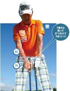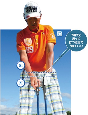 7番の長さで握って構え、7番のつもりで楽に打てばOK!