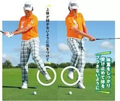 右に体重が残りやすい人は、バックスイングで右足に乗り切れずに左足に残り、逆にフォローで右に乗った状態になるパターンも。クラブの動きではなく、体重位置を意識することが解決への近道だ。