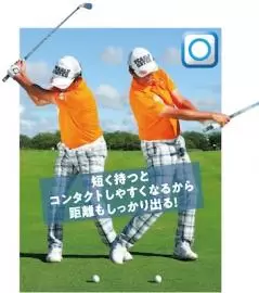 クラブを短く握るとそのぶん飛距離が落ちそうだが、コンタクトしやすくなるぶんミート率が上がり番手なりの距離を打てるという。球を上げる意識を捨てて振り抜こう。