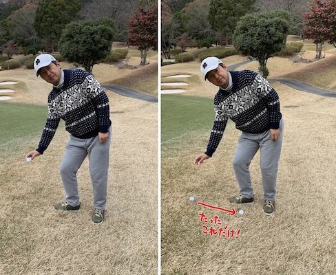 たったこれだけしか転がりませんでした。しかもライが良さそうなところに狙って落とせるので、その後のショットがかなり楽になります。