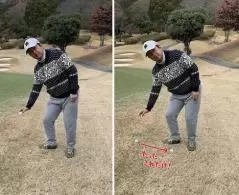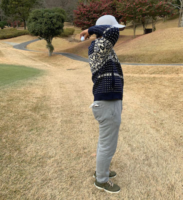 落とし場所を狙ったり出来ないように後ろ向けで背中側にボールを落としてたんですね。いや~ゴルフも変わったもんです。