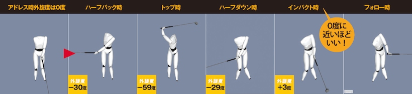アドレス時の0度に近いほど、インパクトがスクエアだということになる。