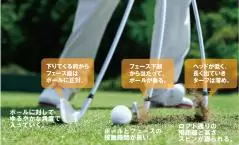 地面にあるボールを打つアイアンショットにおいて、これは致命的。しかも、アイアンの芯の高さはフェース中央よりもやや下めに位置している。フェースが開いて(上を向いて)いては、芯をとらえられないし、小手先でタイミングを合わせて当てなくてはいけなくなる。ボールをすくって「点」でとらえるような、インパクトゾーンのないインパクトになるのだ。