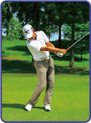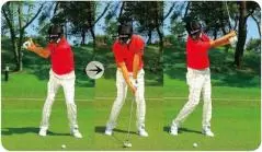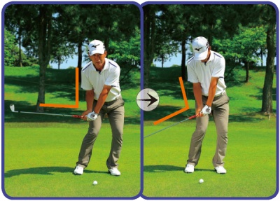 スイングのどの過程でも体の軸を傾かせないことが条件。これを満たすと比較的コンパクトなスイングになる。
