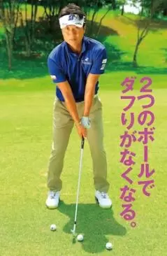 ダフる人はインからヘッドが落ちている可能性大。打つボールを中心に、右手前と左奥に2つのボールを置き、当たらないように打つとヘッドが上から入るようになる。