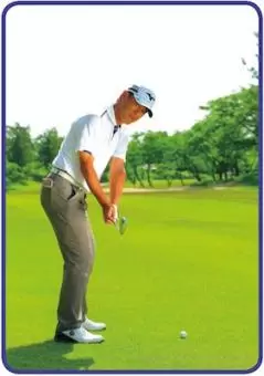 極端な話パターのように構えるのがアマチュア。ボールに対してヘッドをフラットめに入れてフェースを真っすぐ出すにはいいが、アイアンではNG。