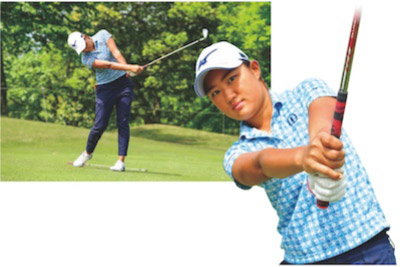 あまり大きく体を動かさない。クラブを自分でコントロールする意識をつけるために、トップは右手のヒラが正面を向くまで、フォローは、左手のヒラが正面を向くまで、を徹底して練習していました。