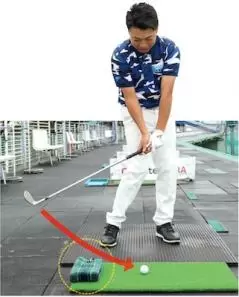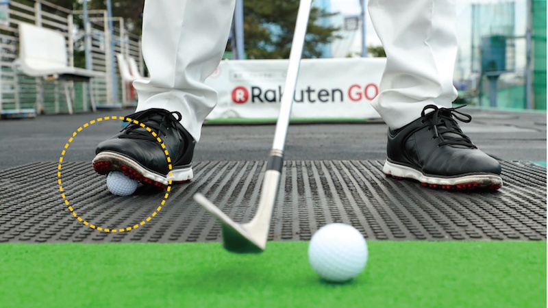 マットの右端にボールを置いて、ダフれない状況を作る。