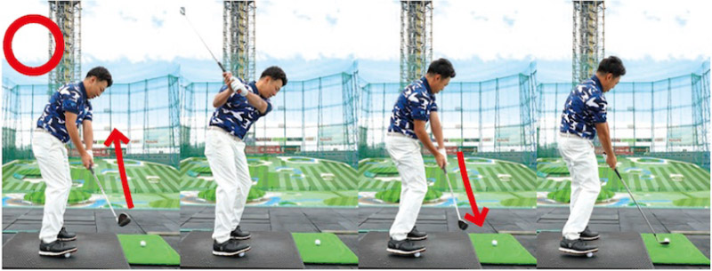 ▲バランスを崩さずに上げる=ヘッドがオンプレーンで上がる。