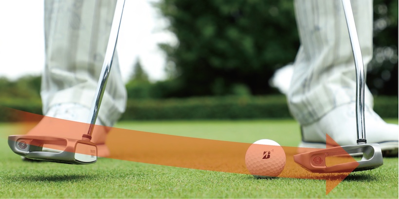 パターのヘッド軌道:ややダウンブローに打つことでボールがしっかりつかまる