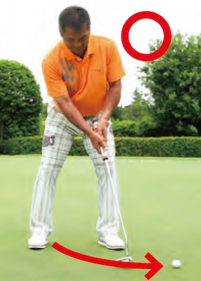 ややダウンブローでパターのヘッドは低く出す