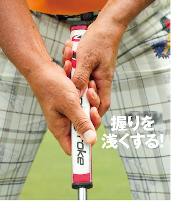 パターの握り方:手のヒラを開いて浅く握ると手首の動きが抑えられる