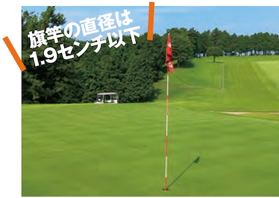 ピン(ピンフラッグ)の正式名称は旗竿(Flagstick)。世界共通の規則ではないが、旗竿の長さは少なくとも7フィート(2.13メートル)以上のものを用いるように、日本ゴルフ協会は勧めている。風が強いホールは旗竿が折れないように短めに、打ち上げのホールは見やすいように長めに工夫しているケースもある。