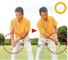 握りを「浅く」することで、手首の動きが抑えられ、アドレス時の手首の角度がキープしやすくなる。ヘッドを真っすぐ引いて真っすぐ出す動きも作りやすくなる。