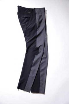この商品は、ゴルフをするためのトップウエアコレクション「g-arc」のパンツです。「g-arc」コレクションはテクノロジーを使って世の中にないものを生み出すことにこだわっています。このパンツは、1970年代に一世風靡した膝を屈曲させて腰を落とした形態が特徴の『デサント』スキーの「デモパンツ」を元にして開発し、後身頃中心にカッティングを入れて膝を屈曲させているシルエットが特徴です。ゴルフは雨に対応することが必要であり、はっ水素材を使用することに加え、カートに座ったりする際に中に水が浸透しないよう、後身頃の上部にフィルムラミネート裏地を採用、股部分にはシームテープも貼っています。雨天時には蒸れも気になるポイントであるため、前身頃は透湿性に優れたウールを使用しています。前身頃、後身頃いずれも4WAY(フォーウェイ)ストレッチの素材でパターンにもこだわり、ゴルフの動きに追随できます。熱圧着、レーザーカットなどの縫製技術を用いた日本製のパンツで、シャツのずり上がりを軽減する工夫、前ポケットはティーとマーカーが混ざらないように中で2つに分けるなどゴルフに特化した機能が満載です。今後も世の中にないものを生み出しお客様に喜んでいただきたいと思っています。