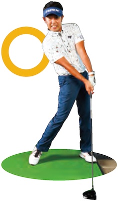 トップがスタートでインパクトがゴールと考えると、トップでの勢いの付け方がヘッドスピードを上げて、飛距離にも大きく影響してきます。上手い人の足元を見るとどのプロもトップでは足首が内側に曲がっています。外側に曲がった状態からダウンスイングに入るプロはいません。これが足元の新常識と言えるでしょう。