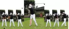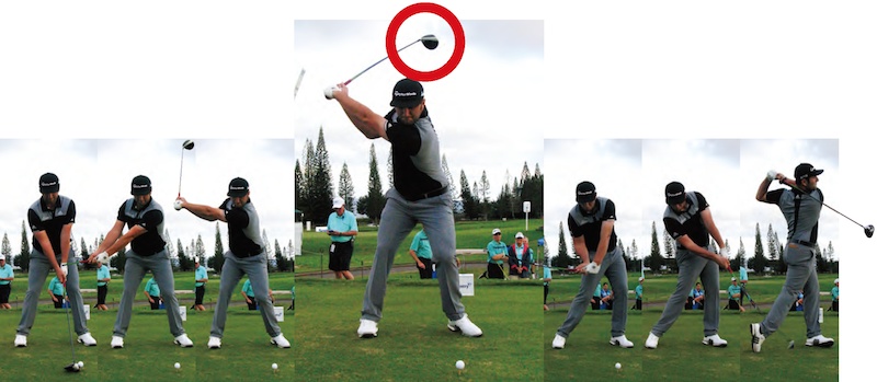 非常にコンパクトなトップで、高身長を生かした、下ろすだけのブラさないスイングができている。