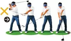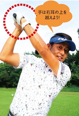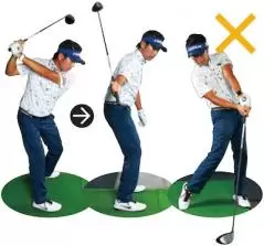 オーバースイング気味でも体は回りきらないで、クラブも決してクロスにならないようにしよう。