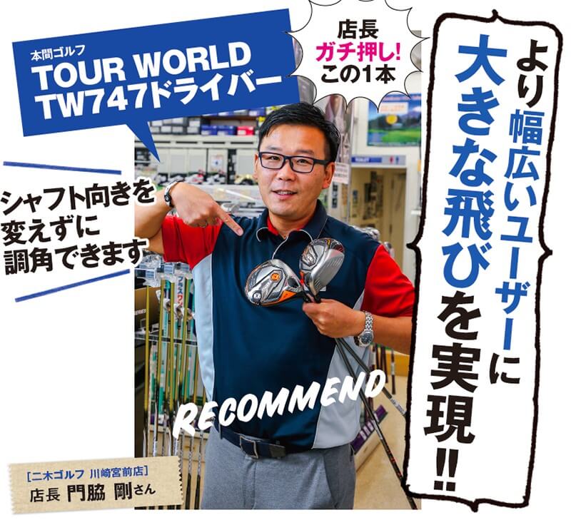 二木ゴルフ川崎宮前店“門脇 剛 店長”がおすすめの2019年最新ゴルフクラブは本間ゴルフ TOUR WORLD 747 ドライバー