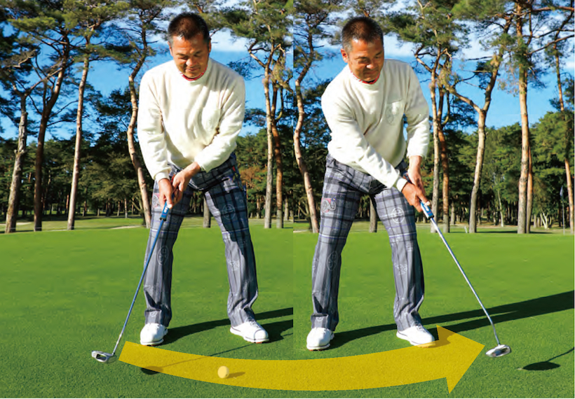パッティングは左右対称の振り子運動だといわれるが、ストローク中、支点となるグリップエンドが左右に大きく動くため、厳密には振り子ではない。カタチにこだわり過ぎると、感覚が生かされないので注意が必要だという。