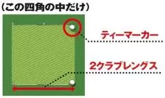 旧ティーインググラウンド。ティーマーカーを結んだラインの2クラブレングス後方までのエリアのみ示し、それ以外はジェネラルエリアとなる。