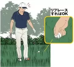ボール探し中に自分のボールを偶然動かしても無罰になった。ボールを元の位置に戻すだけでいい。