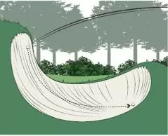 救済エリアは基本的に以前のまま。ただし、ホールと元のボールの位置の後方線上にドロップする場合も線上に基点を設け、そこからホールに近づかない1クラブレングスの範囲が救済エリアとなった。つまり、線の左右に余裕ができたわけだ。
