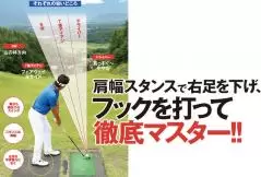 - STEP4 スタンスを普段のドライバーショットの足幅に広げてショット。ただし、いきなりフルスイングは×!