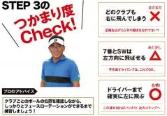 STEP1、STEP2ではティアップした球をハーフスイングでとらえる練習をしました。もっともフェースが返りやすいサンドウェッジ(SW)からスタートすることで、確実に手首を返してヒットする感覚がしっかりつかめたはずです。STEP3では肩から肩までのスイングでこの感覚を体に叩き込みます。