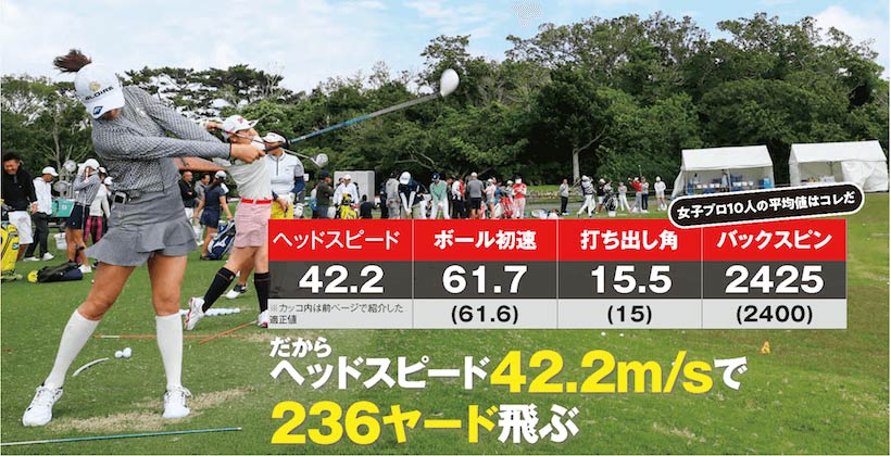アマチュアゴルファーと同じくらいのヘッドスピードなのに、女子プロが“飛ぶ”のには、こうした背景が隠れているのです。