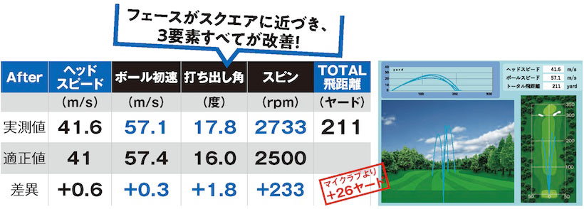 インパクトのロフトが増えれば適正値に近づき、キャリーが伸びるはずです。