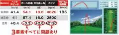 | 選手名 | ヘッドスピード (m/s) | ボール初速 (m/s) | 打ち出し角 (度) | スピン (rpm) | 飛距離 (ヤード) |