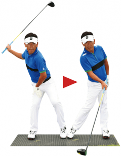 - STEP2 フェースが返りにくい長いクラブで返す動きにTRY