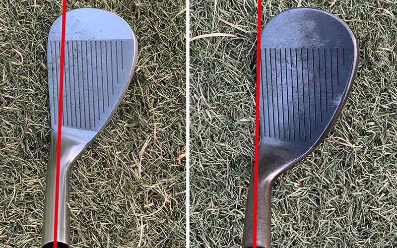 グースネックのウェッジはシャフトの中心軸よりもリーディングエッジが右側にあるか中心軸の延長線上にリーディングエッジがあるもののことを言います。