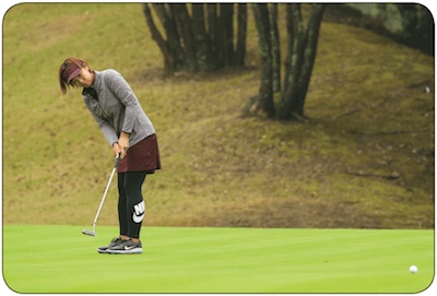 感性のプレーヤーは飛ばしも小技も上手い。特にパッティングはオリジナルな自分であみだしたグリップで、複雑なラインや速いグリーンを次々と攻略して行く。