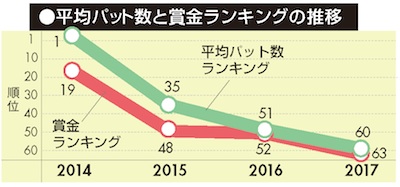36位(2018年度)の賞金ランキングよりも平均パットが17位と高順位