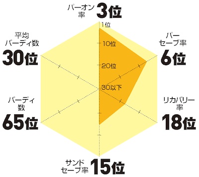 ・パーブレーク率…バーディかそれより良いスコアを獲得する率(バーディ以上を獲得した総ホール数÷総ホール数)。