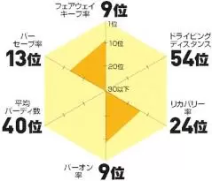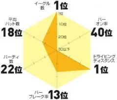 ・トータルドライビング率…ドライビングディスタンス順位とフェアウェイキープ率順位を合算したランキング。