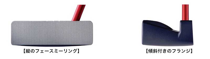 フランジにフェース面に対して1.5°裾広がりの傾斜を付け、フランジをカップに対してスクエアに構えて1.5°開いた状態にすると、0°~10.11°の範囲内でストロークすればカップインすることになり、ストロークの許容角が従来の5.61°の約2倍に拡大している。そのほかにフェースに立てミーリングを採用し直進性を向上させるなど、安定したストロークにより、高確率でカップインを狙えるパターとなっている。