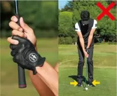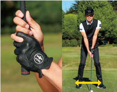 クラブの重さを利用しやすいように3割くらいの握り圧でグリップする。