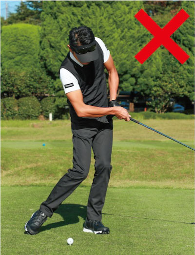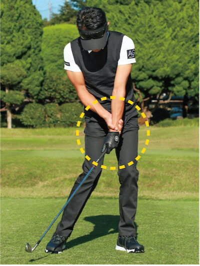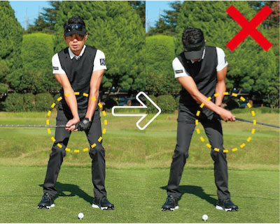 体を回さず、手だけでクラブを操作すると手首をこねてしまう。
