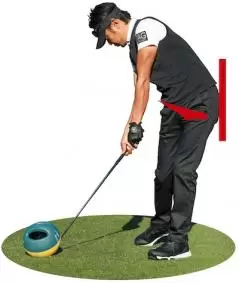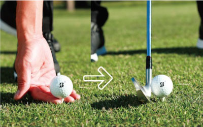 ハーフスイングの練習は、体の無駄な動きを省くことに主眼を置いています。そのポイントに特化する ために、一貫してボールをティアップして打ちましょう。練習場のゴムティなら低めのSが最適です。ボールをマットの上に置くと、うまく当てようとして無駄な動きが生じやすく、効果が半減します。