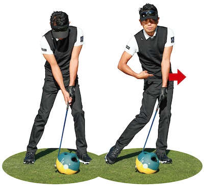 重いものにフェースを当てて真っすぐ押してみよう。腰を少し左に移動させながら回す動きが自然に生じるはずだ。