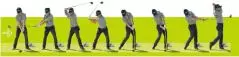 3. 左ヒザを伸ばさずに左足をしっかり踏ん張ってボールを投げる感覚だ。(写真右)
