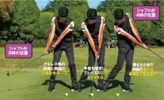 左手首を右手で握り、左手主導で素振りするとクラブのたわみを感じやすい。