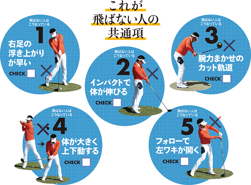 まずは、飛ばない人の“悪い動き”をCHECK!! 2つ以上あてはまった人は、要注意!