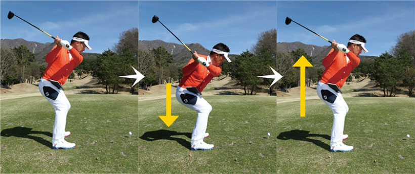 コースに出ても、右足つけ根で体を支える理想のトップを再現できれば、体が伸び上がることも、必要以上にスイングが大きくなることもありません。結果、上下動のないスムーズなスイングが生まれ、真っ芯で球をとらえたビッグドライブが可能になるのです。普段の練習ではもちろん、ラウンド中、上下動を感じたときなど、ちょっとした待ち時間に屈伸するのも効果絶大ですよ!