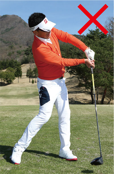 日本人は右利きが多く、中でも腕力がある人は器用な右手が悪さをしがちです。手を使いすぎるとカット軌道になりスライスを誘発するため、持てる力をうまくボールに伝えることができず、大きく飛ばせません。