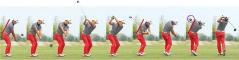 アドレスからフォローまでの、前傾角と腰の高さに注目。一切、変わっていないことがよくわかる。軸と下半身が強くなくては、こうはいかない。