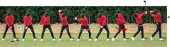 切り返しから一気に体が開くが、クラブが下りてくるまで待てるところがすごい。(写真:5〜6カット)
